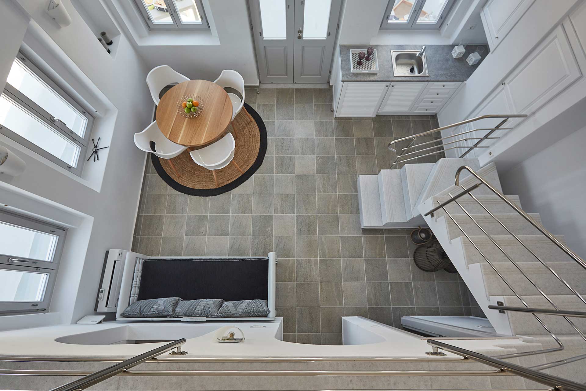 The Villa can accommodate up to four persons in a sunlit open plan space consisting of the ground floor and the loft and is ideal for families, couples or group of friends. On the ground floor there is a queen double bed bedroom, the living room, a kitchenette, the bathroom and a WC, on the loft there are two single beds.